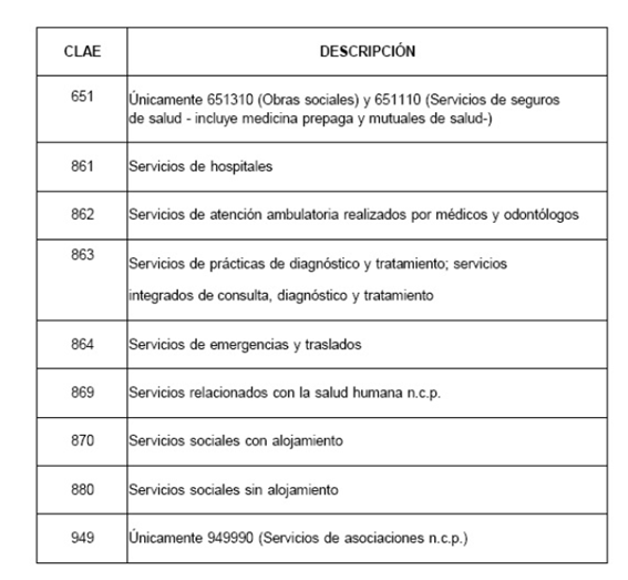 El Decreto de referencia determina para las empresas de salud, cuya actividad se detalla en el Anexo que copiamos al final: