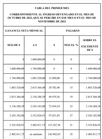 Entre otros aspectos se publican las alícuotas y tramos que deberán  aplicarse a los ingresos devengados desde el mes de octubre de 2023 y hasta los percibidos en el mes de diciembre de 2023, inclusive.