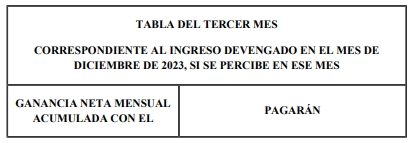 Si el ingreso correspondiente al devengado en el mes de diciembre de 2023 se percibe en el mes de enero de 2024, corresponderá determinar el impuesto conforme al tratamiento vigente en el período fiscal 2024.