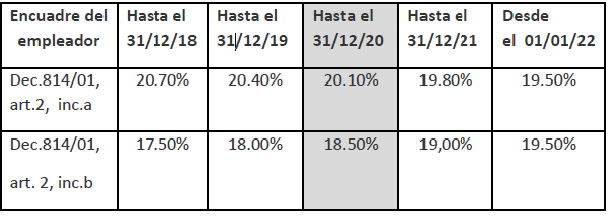 2: Contribuciones patronales. Modificación alícuota (art.2 Dec.814/01).