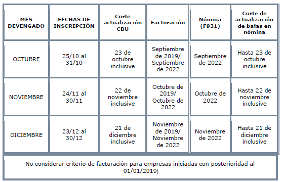 Se fijan las fechas de inscripción, de facturación y de nómina, del programa REPRO para los sueldos devengados octubre a diciembre/22, de acuerdo al siguiente detalle: